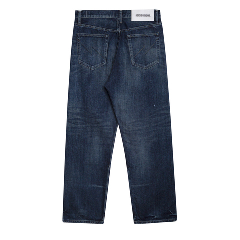 Джинсы Neighborhood из 12-унцового денима с универсальным кроем "DP BASIC", подходящим на любой тип фигуры. У них стандартная и свободная в бёдрах посадка, а также в меру широкая штанина с небольшим сужением и заниженной линией шагового шва.